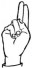 На ћирилици написано МИЛОМИРА ШИРОЛА састоји се из 14 слова [?]. Исписано ћириличном једноручном азбуком за глувонеме: